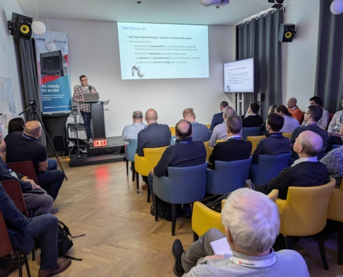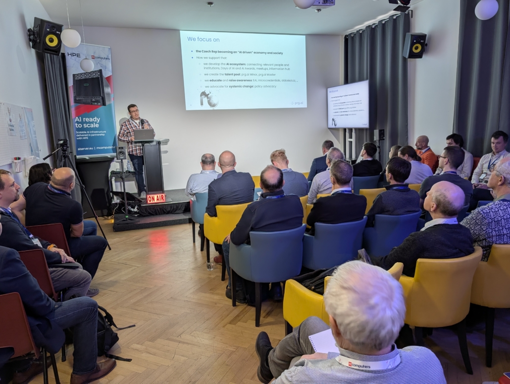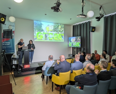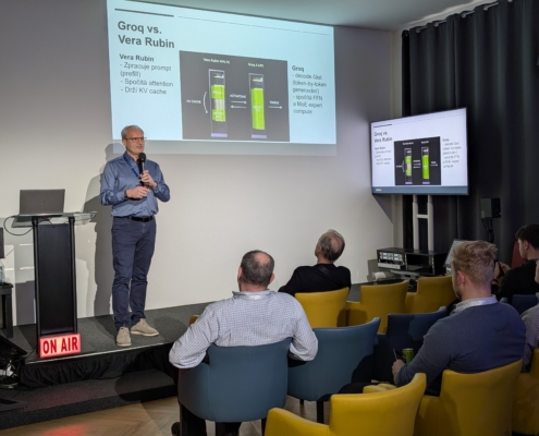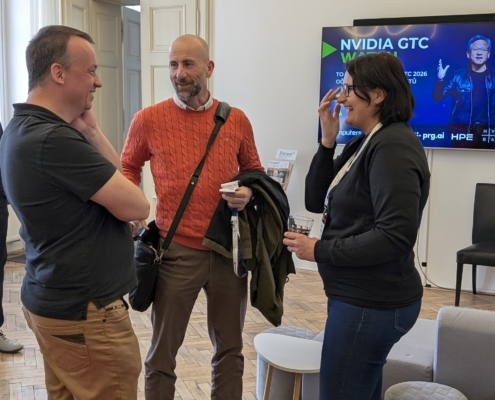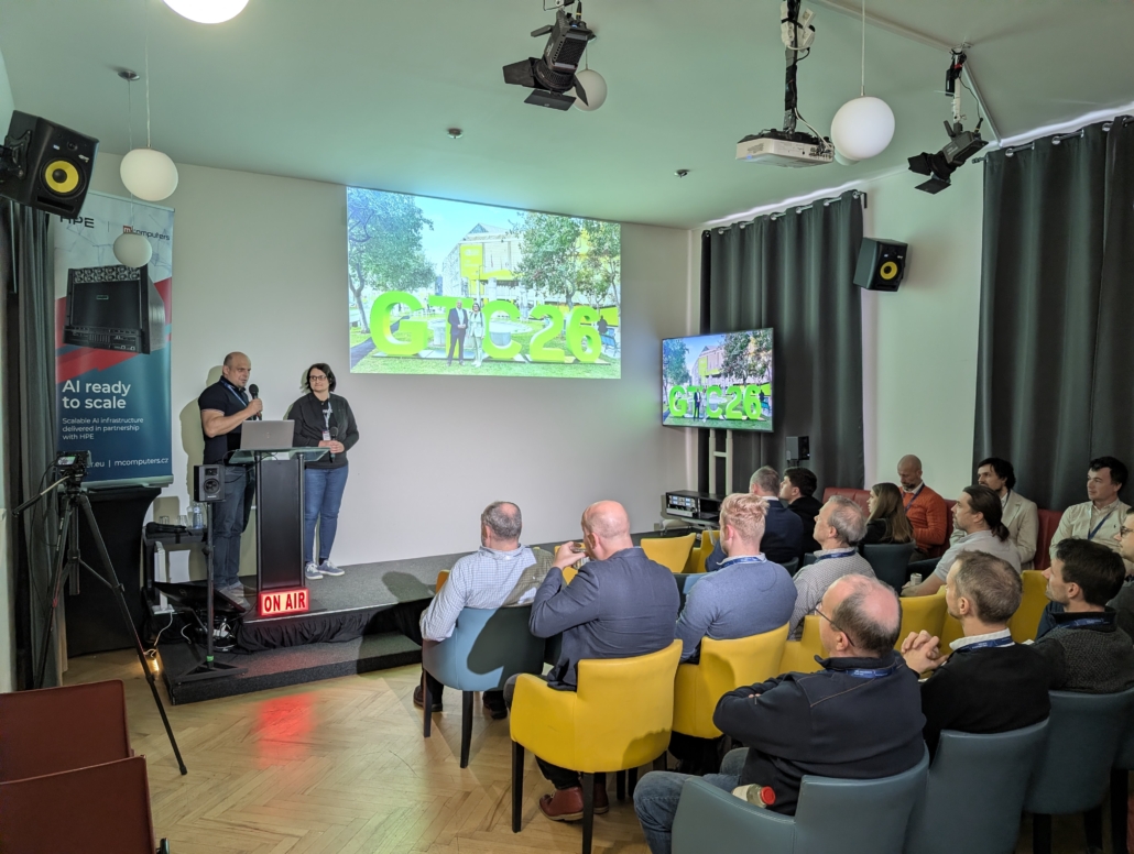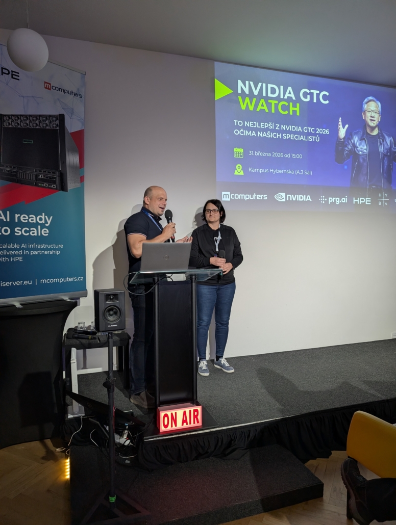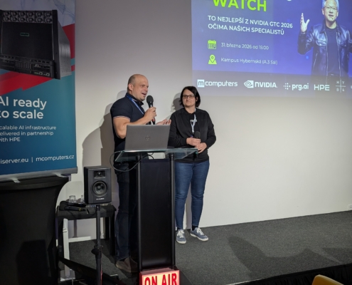 Ve spolupráci s prg.ai a HPE jsme v úterý 31. března 2026 uspořádali setkání NVIDIA GTC 2026 Watch, kde jsme představili to nejzásadnější z letošního ročníku konference NVIDIA GTC v San Jose. Naši zástupci Petr Plodík a Kamila Jeřábková, kteří se akce osobně zúčastnili, sdíleli nejen klíčové novinky, ale i své dojmy a zákulisní postřehy. Setkání se konalo v pražském Kampusu Hybernská a přilákalo téměř 60 zástupců firem, odborníků i technologických nadšenců.